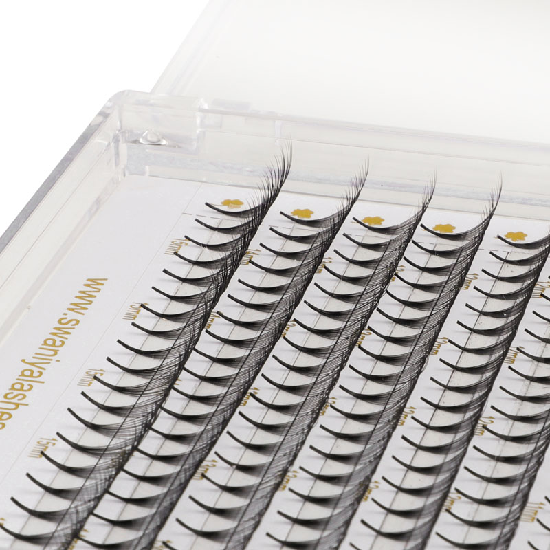 A Swaniya előzetes Lash rajongói készen állnak a használatra, így az alkalmazás folyamatát gyors és egyszerűvé teszi. Mindegyik tálca 12 sor 10 előzetesen kialakított szempillát tartalmaz, biztosítva, hogy elegendő szempilla legyen több alkalmazáshoz. A szempillákat kiváló minőségű PBT rostból készítik, könnyű és kényelmes érzést biztosítva.